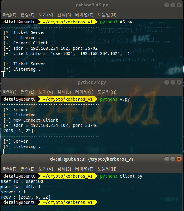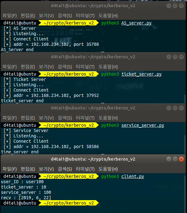 # 티켓 = [클라이언트ID, 클라이언트address, 티켓서버번호, 티켓발행시>간, 티켓유효기간]