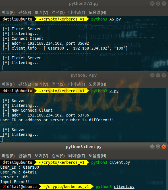 - AS_server에서 검증 후 user_ID나 ticket_server번호가 일치하지 않을 경우 티켓발급 불가
