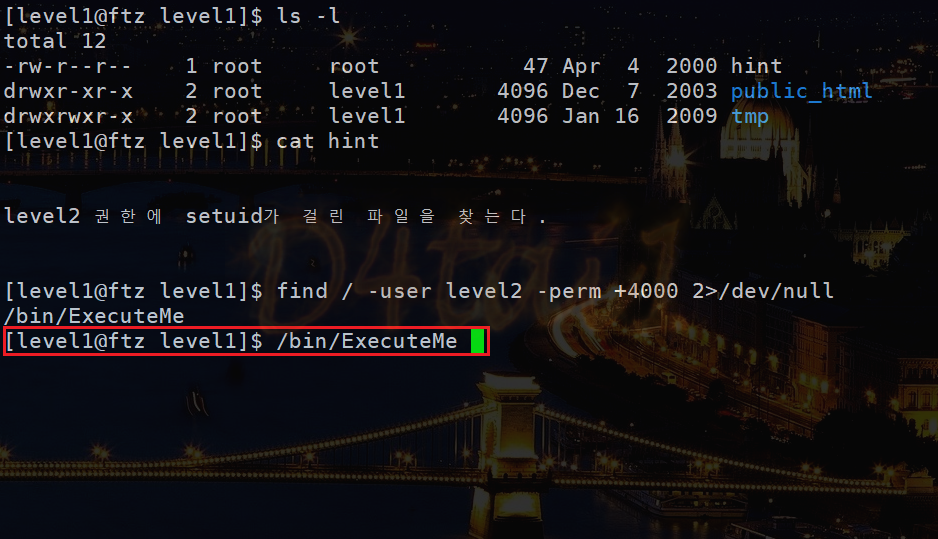 level2 권한에 setuid가 걸린 파일을 찾는다??