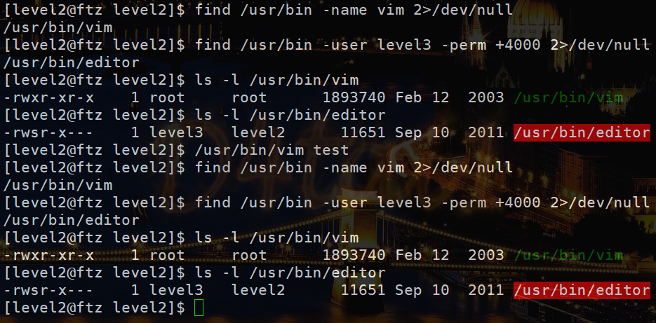 level3의 권한으로 vi를 실행한다는 말과 동일하죠?