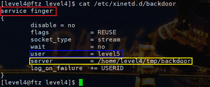 server = /home/level4/tmp/backdoor # 서비스할 파일 위치