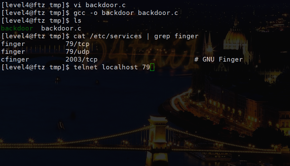 gcc -o backdoor backdoor.c 로