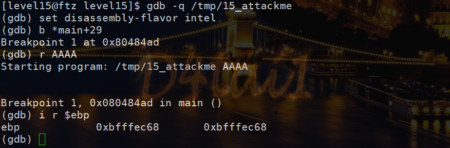 0xbfffec58이 0xbfffec54를 가리키도록하면