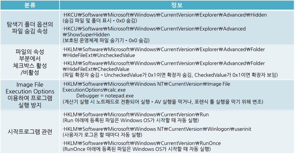 1) 악성코드가 이용하는 Windows 레지스트리정보