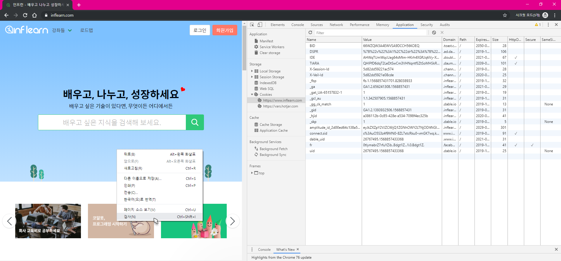 [마우스 우클릭]을 한 후 [검사]를 누릅니다.