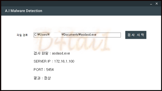 ▶ 악성인지 정상인지 서버에서 판단해주면 결과를 출력한다.