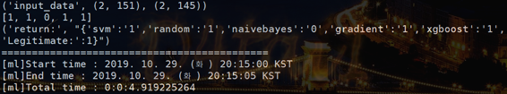 ▶ 전처리 후 모델탑재 / 모델 별 결과확인 / 악성여부 판별 / 클라이언트로 결과전송을 진행한다.