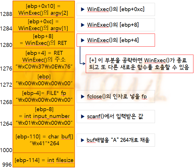 0x110[272byte] + EBP[4byte] + RET[4byte]