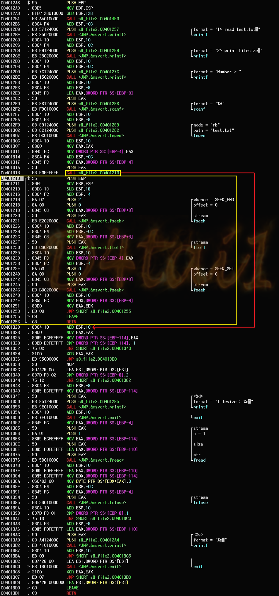 참고2 : 노란 박스부분은 401210의 함수 내부입니다.