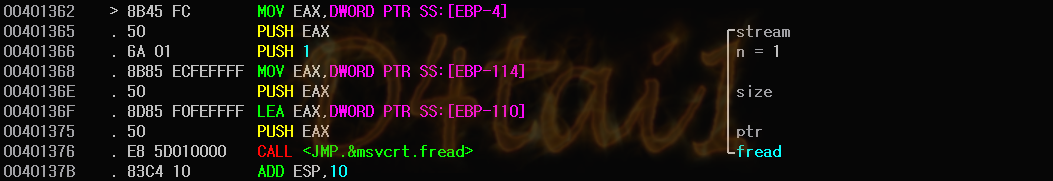 여기서 fp는 fopen이후 eax에 있는 내용을 확인했다가 적어주어야 합니다.