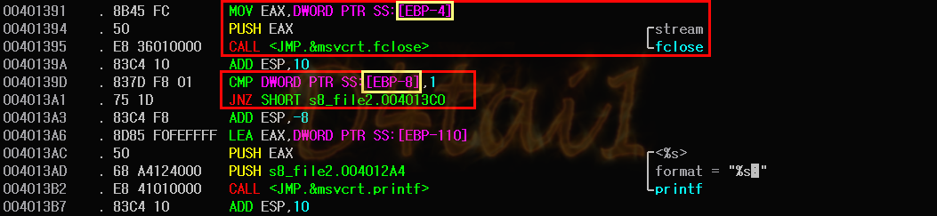 즉, [ebp-4]는 fp가 들어있어야 fclose가 실행되고,