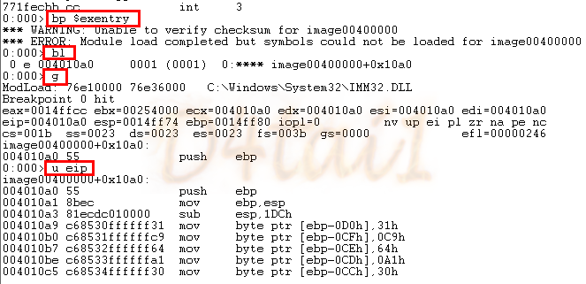[bp $exentry] : EntryPoint에 브레이크포인트를 걸고