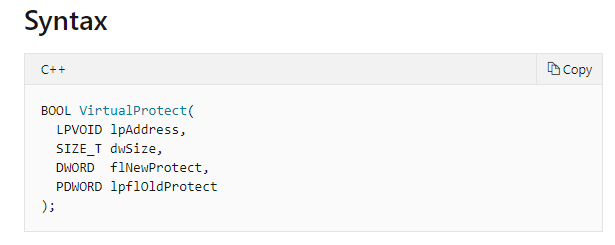 VirtualProtect는 특정영역의 접근권한을 변경하는 함수입니다.