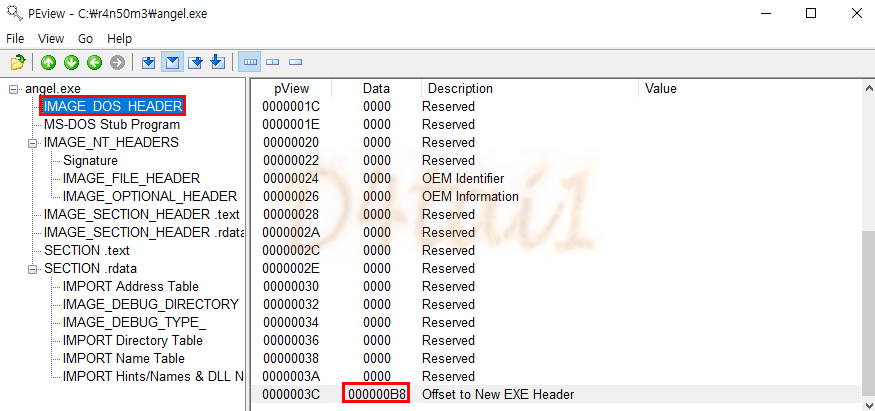 IMAGE_NT_HEADERS의 offset이 0xB8인 것을 확인할 수 있습니다.