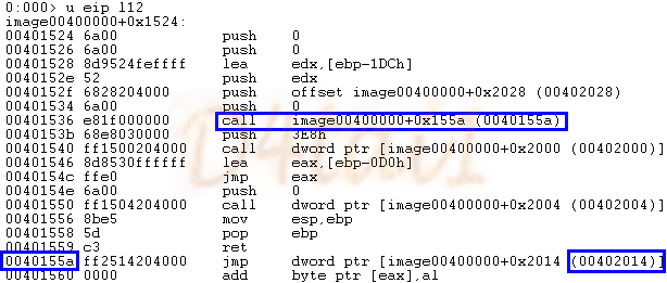 0x40155a를 가보니 0x402014로 jmp하고 있습니다.