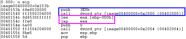 0x400000(ImageBase) + 0x2000(IAT) + 0x8 = 0x402008은