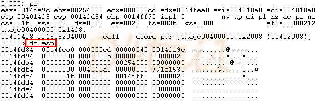[dc esp] : 스택의 top포인터부터 보여주는 것을 보니