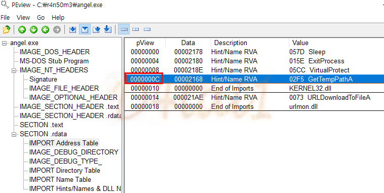 IMPORT Address Table에서 GetTempPathA()의