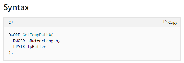 GetTempPathA(얻어올 버퍼의 최대크기, 얻어올 경로의 주소);