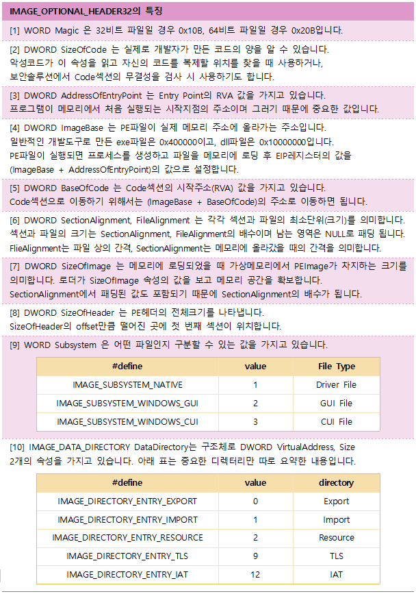 IMAGE_OPTIONAL_HEADER32의 [2]에서 다룬
