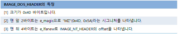 먼저 IMAGE_DOS_HEADER 구조체에서