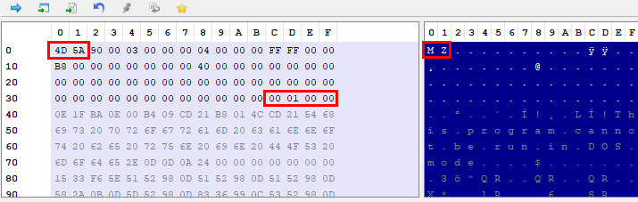 맨 뒤 4바이트인 0x100이 IMAGE_NT_HEADERS의 시작주소가 되겠네요.