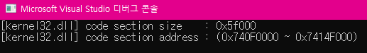 code섹션의 크기와 주소영역을 확인할 수 있습니다.
