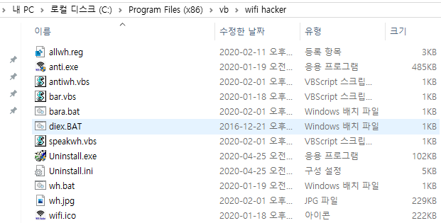 ▶ "C:\Program Files (x86)\vb\wifi hacker\allwh.reg"를 생성하네요.