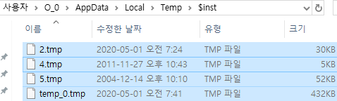 ▶ 위와같은 방법으로 총 4개의 임시파일을 생성하네요.