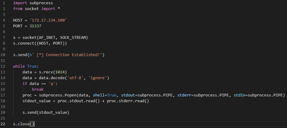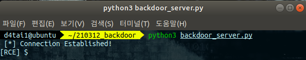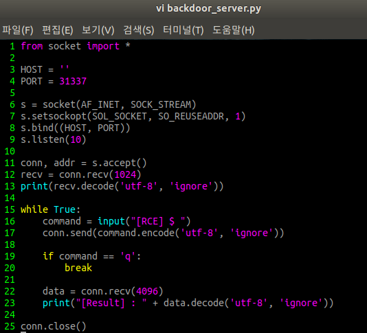 지금은 백도어에서 동작할 코드를 파이썬스크립트로 동작시키지만