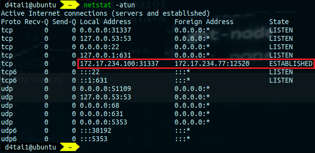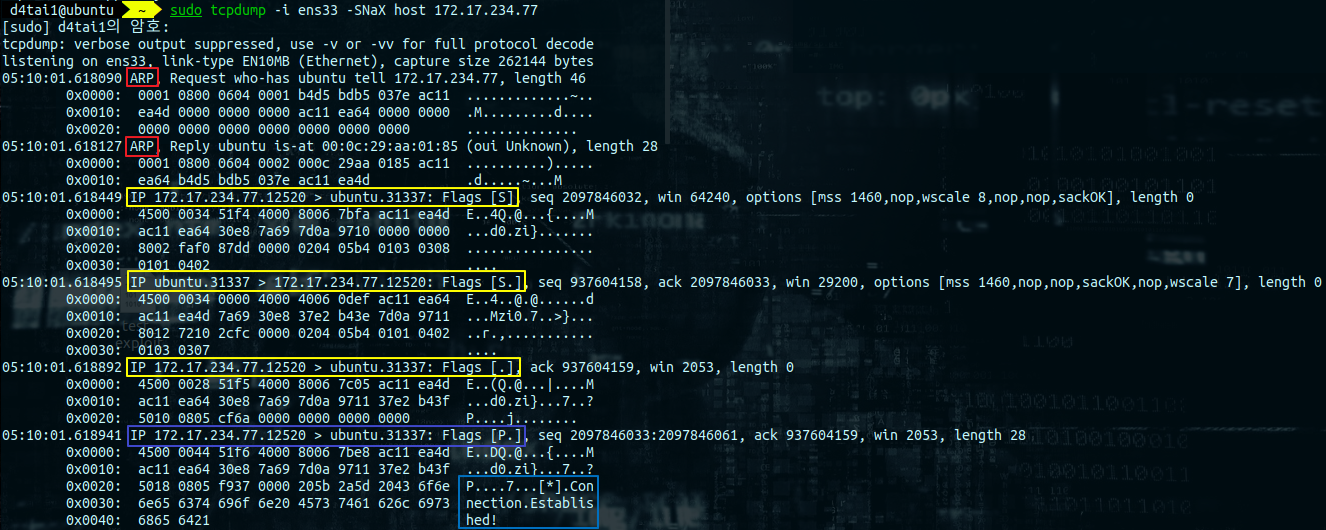 [그림3] tcpdump에서 확인한 것과 동일하게 이미 연결되어있는 것을 확인할 수 있어요!