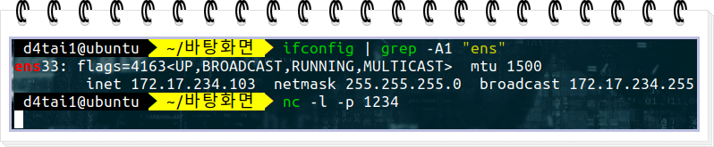 ▶ 넷캣의 -l은 리스닝모드이고, -p 다음에는 오픈할 포트를 적어주세요
