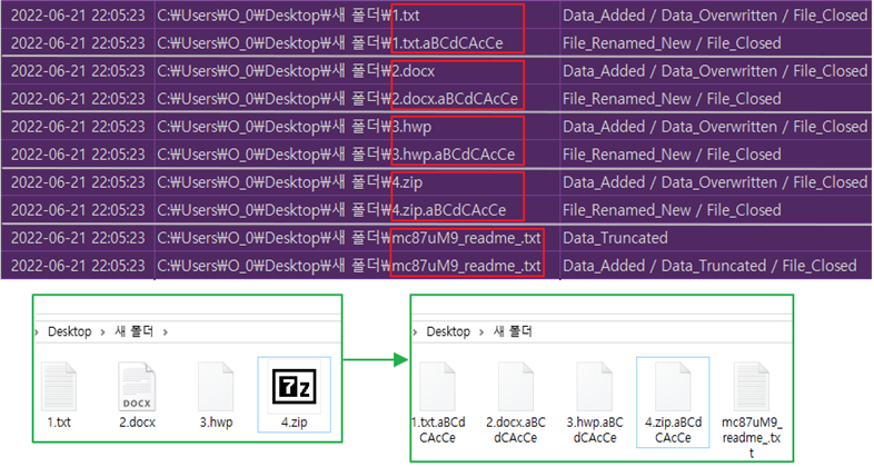 5) 암호화 전/후 파일명 및 암호화 시간